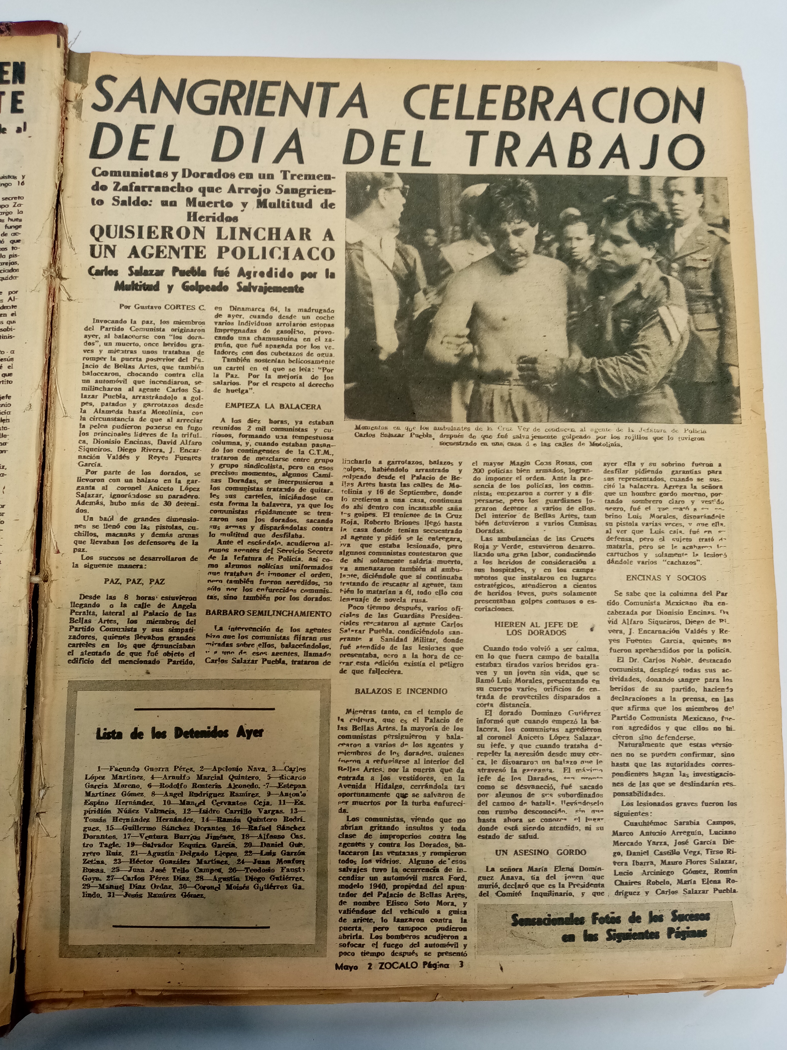 Uno de los acontecimientos más relevantes fue la represión del 1 de mayo de 1952 en contra de militantes del PCM, FPPM, PP y Partido Constitucionalista. Aquel día se tenía planeado un mitin encabezado por el presidente Miguel Alemán en el Zócalo de la Ciudad para conmemorar el día del trabajo. La cobertura que hicieron periódicos como Excélsior y La Prensa estuvo dirigida a exaltar la participación del mandatario, lo que quedó plasmado en las fotografías que se publicaron a página completa y en donde se observaba al presidente a la cabeza de una marcha en compañía de varios dirigentes obreros.